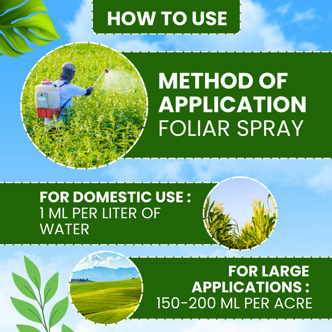 कैसे उपयोग करें: अनुशंसित खुराक को उचित मात्रा में पानी में मिलाएं, अच्छी तरह हिलाएं और नैपसैक स्प्रेयर से स्प्रे करें