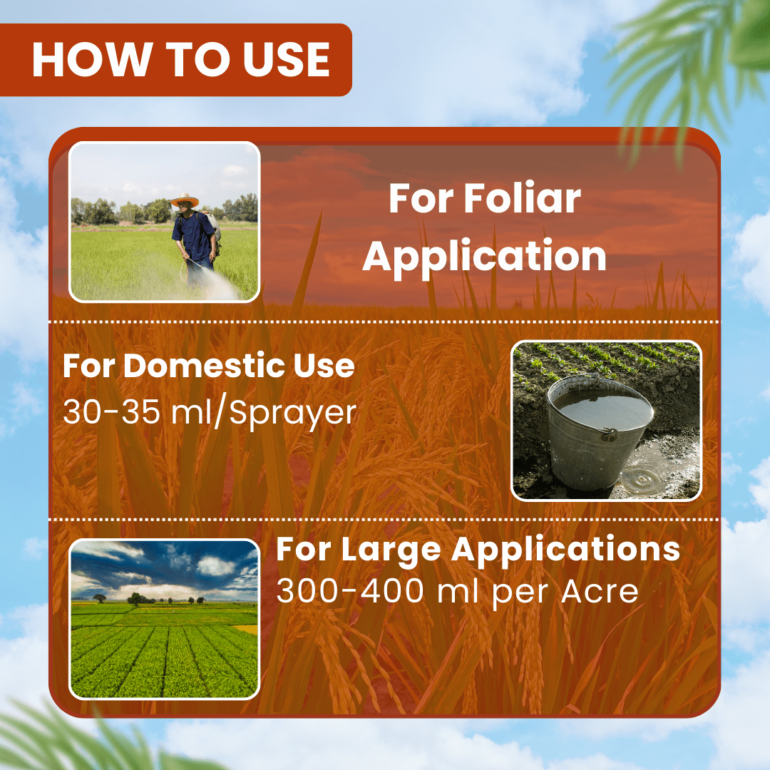 खुराक: 30-35 मिली/स्प्रेयर या 300-400 मिली प्रति एकड़।