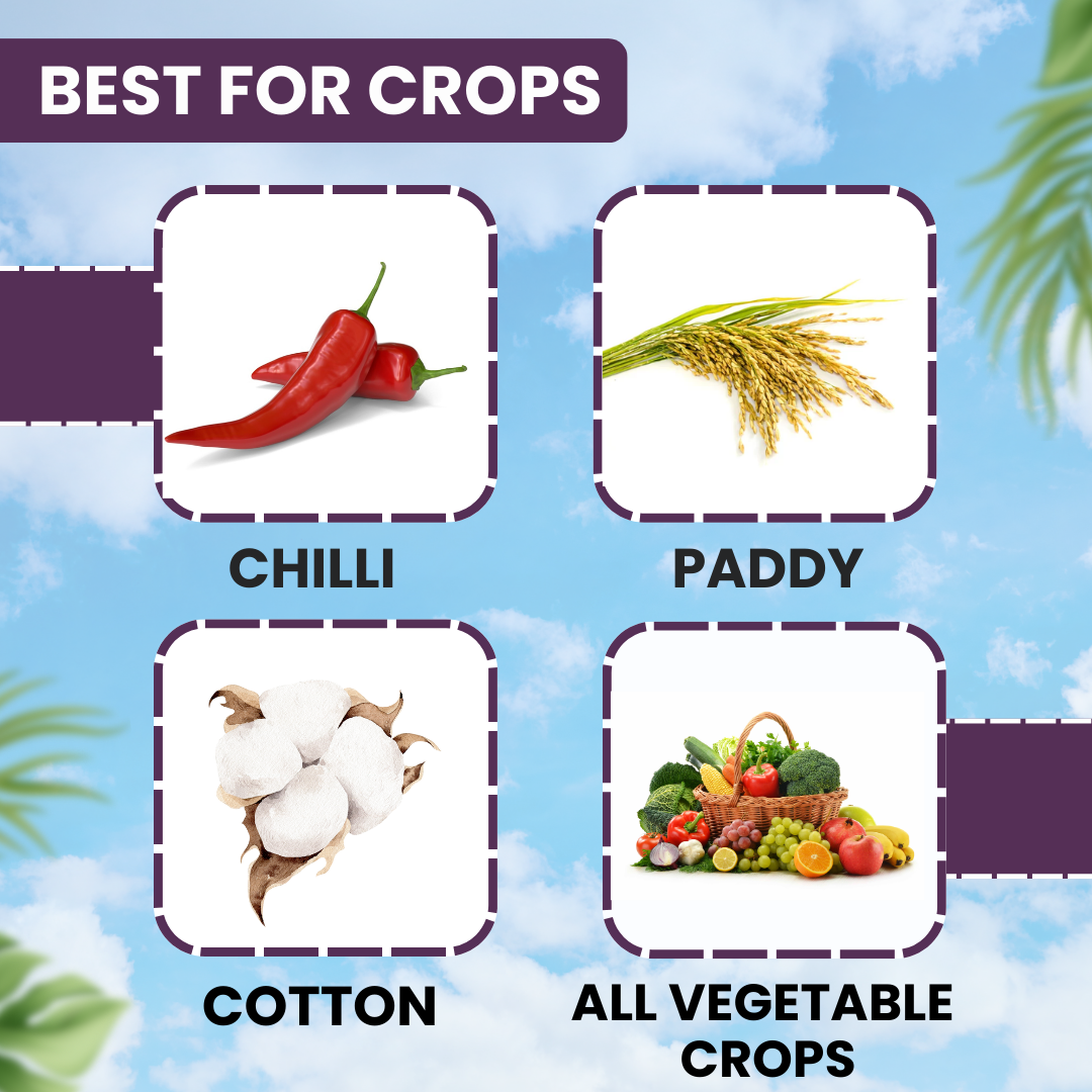 Target Crop:chilli, Paddy, Cotton, and All Vegetable Crops