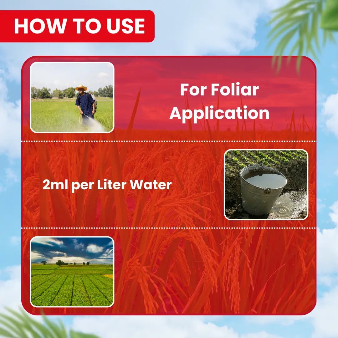 Cotton, rice, and vegetables: 1.0–2.0 ml per liter of water.