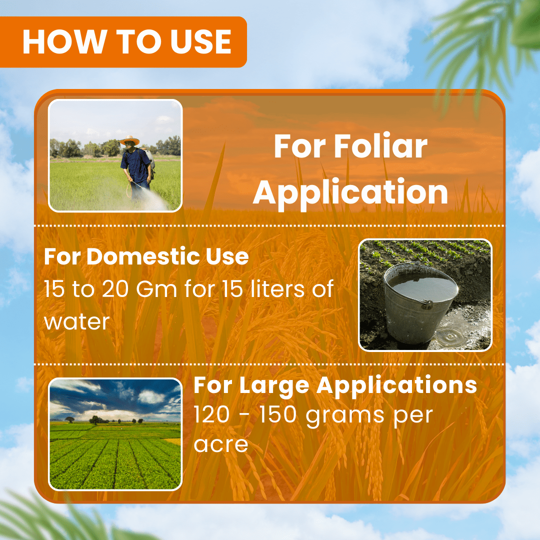 - Foliar Spray: 0.3–0.5 g per litre of water (depending on crop and pest severity).