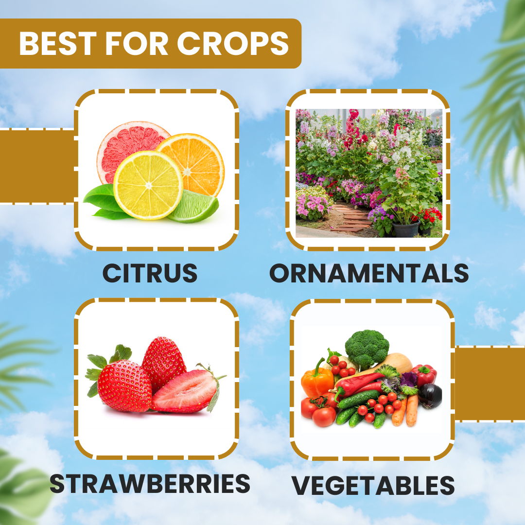 Fruits (Mango, Citrus, Grapes, Guava): Protects from fruit flies, scale insects, and aphids.
